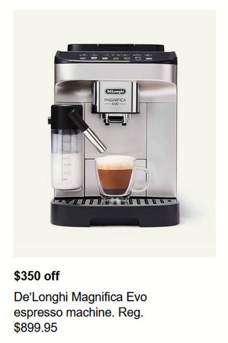 Limited-time savings! Shop in store and enjoy $350 off on De’Longhi Magnifica Evo Espresso Machine.