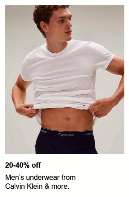 Better hurry! Shop in store and get 20-40% off men's underwear from Calvin Klein & more.