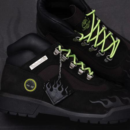Bronx-based customizer LOSO's flame motif ignites Timberland's iconic Waterproof Field Boot. Eye-catching green accents and matte black flames emblazon our iconic suede, bringing the heat on a utilitarian silhouette.